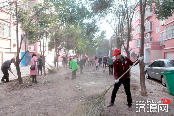 2月25日,在濟河苑小區(qū),數(shù)名黨員在清掃垃圾。 馬歡 劉志鵬 攝
