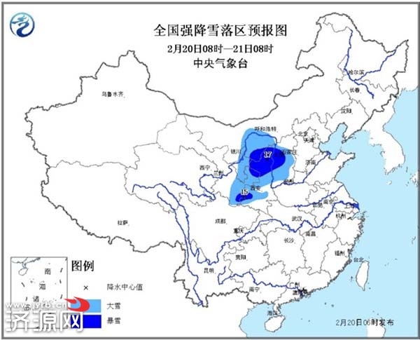 20日08時(shí)至21日08時(shí),西北地區(qū)東部、內(nèi)蒙古中部、陜西大部、山西大部、黃淮西部等地有中到大雪或雨夾雪,其中陜西北部和西南部、內(nèi)蒙古河套偏南地區(qū)、山西西部等地的部分地區(qū)有暴雪(10~17毫米);西南地區(qū)東部、湖北西南部、湖南西北部等地有中雨,局地大雨。內(nèi)蒙古、山東半島等地有4~6級(jí)風(fēng)。