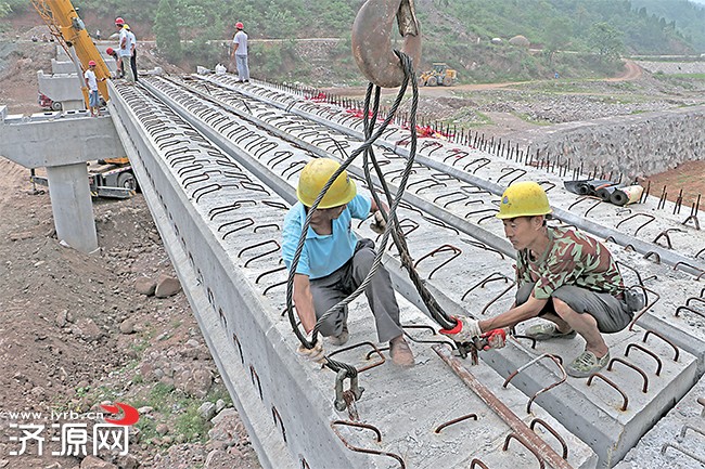 日前,在王屋鎮(zhèn)麻院村,麻院橋工程正在安裝吊板。