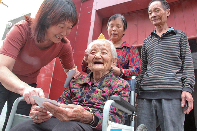 村干部還帶濟源晨報記者看望了今年95歲的武清安老人。3年前,由于遭遇家庭變故,老人的大孫媳婦成了植物人,老人就主動照顧孫子一家,還能做一日三餐。村干部經(jīng)常到老人家看望老人,每到老人生日,還會給他送去慰問金。