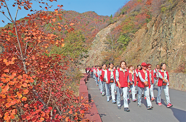 據(jù)市文旅集團副總經(jīng)理李慶軍介紹,王屋山的秋天是多彩的,僅紅葉的覆蓋面積就有數(shù)十平方公里,品種有黃櫨、槭樹、楓樹等,呈現(xiàn)不同的紅色,層次感十分明顯,給人以萬紫千紅的感覺。市文旅集團近三年來對王屋山景區(qū)道境廣場、360度全景索道、天壇極頂?shù)软椖窟M行綜合提升,使王屋山景區(qū)煥然一新。此次健步走活動就是讓大家感受王屋山景區(qū)的全新面貌,在漫山紅葉中享受健步走的快樂,也通過這種形式讓更多的人感受到道教第一洞天王屋山的美景與文化內(nèi)涵,為廣大游客送上一個集旅游、健身、休閑于一體的旅游盛宴。(文/圖 記者 李 浩 見習(xí)記者 趙新迪)