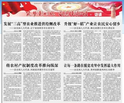 3月10日,《農(nóng)民日?qǐng)?bào)》在3版兩會(huì)特刊《筑夢(mèng)新時(shí)代 奮進(jìn)新征程》 欄目中,以《將農(nóng)村產(chǎn)權(quán)制度改革推向縱深》為題??橇藢?duì)全國人大代表、河南省濟(jì)源市市長石迎軍的專訪內(nèi)容。