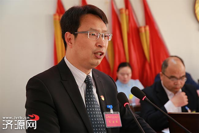 鎮(zhèn)長(zhǎng)于曉波向大會(huì)作《政府工作報(bào)告》 記者 李鵬鵬/攝
