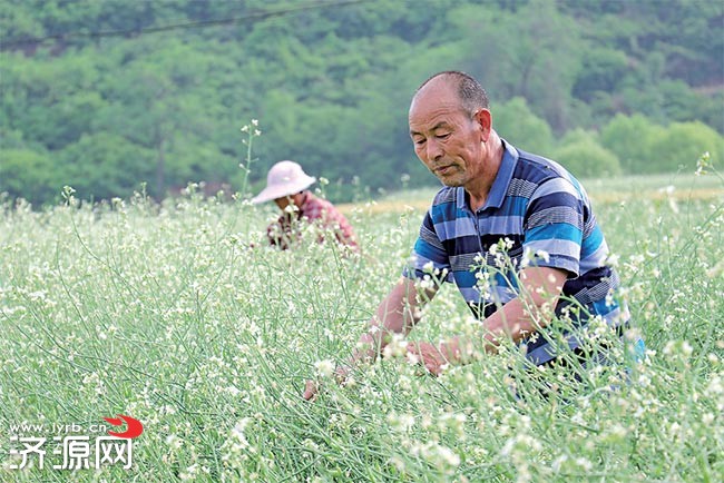 5月14日,坡頭鎮(zhèn)清澗村農民在制種蘿卜地除草。