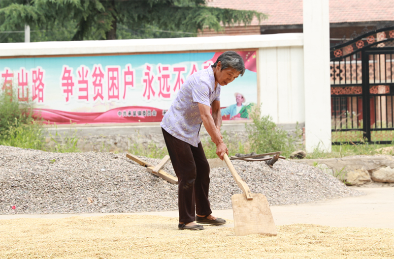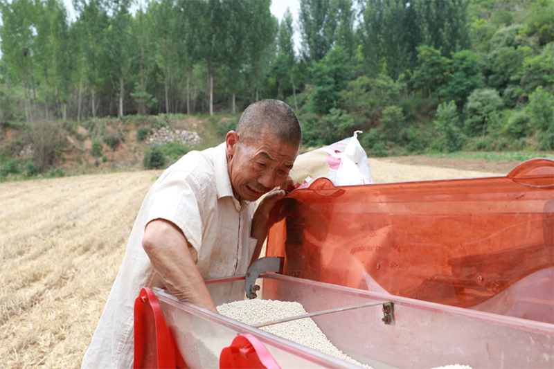 6月8日上午,承留鎮(zhèn)張河村,麥田里,機聲隆隆,煙塵飛揚,一派豐收景象。