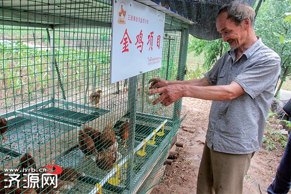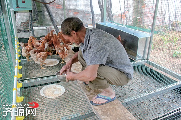 6月30日,王屋鎮(zhèn)政府派人把建雞舍的材料拉來并用一上午的時間就把雞舍給安裝好了。當(dāng)天下午,王屋鎮(zhèn)政府也把雞給他們送來了。“政府想得真周到,還給我們發(fā)了80斤雞飼料。”老人介紹,“這些小母雞都有半大了,每只有1斤多重?!崩先苏f,再喂兩個月就可以產(chǎn)蛋見收益了。