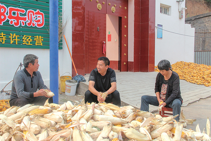 劉召喚與村民一起掰玉米