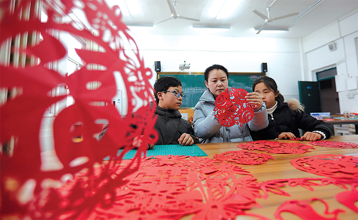 豬年要來到,窗花“剪”出年味道。近日,我市健康路小學(xué)舉行“豬年到生肖俏”主題活動(dòng)。該校剪紙社團(tuán)的同學(xué)們?cè)诶蠋熤笇?dǎo)下,精心制作出各種“豬年”剪紙作品,表達(dá)對(duì)新年的美好期望。圖為學(xué)生在老師的指導(dǎo)下制作“豬年”剪紙作品。濟(jì)源晨報(bào)記者王興輝攝
