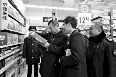 三門峽市市場(chǎng)監(jiān)管局黨組書記、局長(zhǎng)趙冶鈞深入商場(chǎng)對(duì)保健品專柜進(jìn)行檢查。