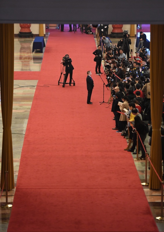3月3日,中國人民政治協(xié)商會議第十三屆全國委員會第二次會議在北京人民大會堂開幕。這是記者在“部長通道”采訪。