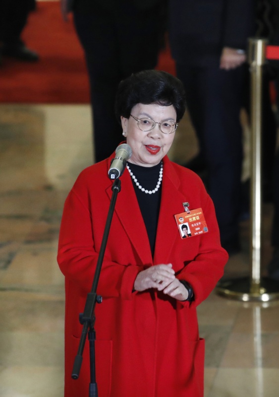 3月3日,中國人民政治協(xié)商會議第十三屆全國委員會第二次會議在北京人民大會堂開幕。這是全國政協(xié)委員陳馮富珍在“委員通道”接受采訪。