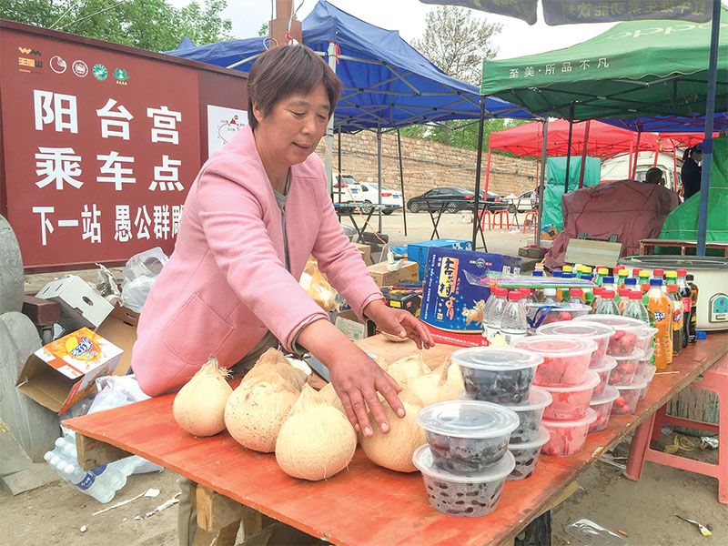 濟源晨報記者看到,她家攤位上除了常見的礦泉水、飲料、玉米、烤腸,還有車?yán)遄?、新鮮椰子等水果。