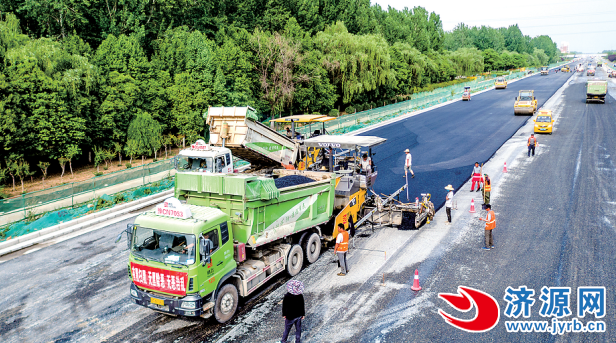 南一環(huán)路段開始鋪設(shè)第一層瀝青 濟(jì)源日報(bào)社全媒體記者 原震宇 攝