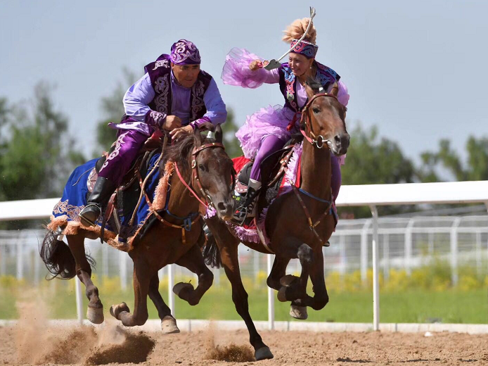此外,體現(xiàn)智與勇抗衡的“馬上角力”,展現(xiàn)哈薩克族對(duì)婚姻自由、平等、開(kāi)放的“姑娘追”,以及國(guó)家級(jí)非物質(zhì)文化遺產(chǎn)蒙古族駝球,都在本次比賽中得以展示。