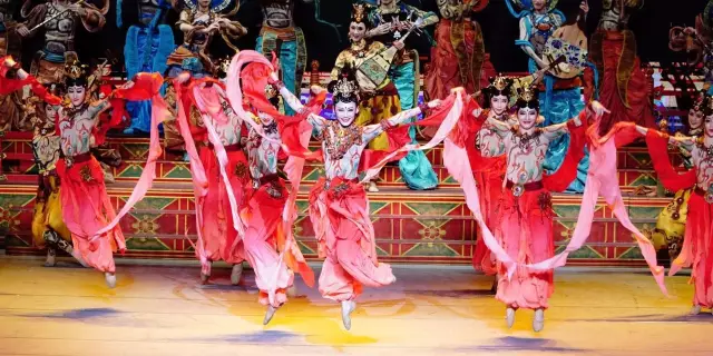 敦煌作為中華文化的重要象征,在國際會晤中也曾出現(xiàn)。2017年,首屆“一帶一路”國際合作高峰論壇的貴賓觀看了一臺主題為《千年之約》的文藝演出。在開場歌舞中,精美的敦煌壁畫,飛天的仙女,大唐盛世的百樂齊鳴,展現(xiàn)出古都喜迎各方賓客的盛景。