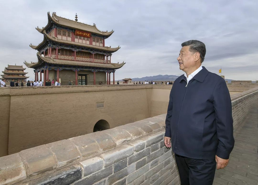正在甘肅考察的習(xí)近平總書記20日上午來到嘉峪關(guān)關(guān)城,察看關(guān)隘、建筑布局和山川形勢,聽取長城文物遺產(chǎn)保護和歷史文化傳承弘揚情況介紹。