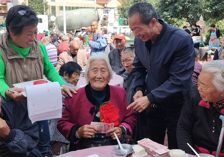 10月7日,在思禮鎮(zhèn)澗北村舉行的重陽節(jié)敬老活動中,91歲的孔繁英老人接過村干部發(fā)放的慰問金后開心地笑了。當(dāng)日,澗北村共有235位70歲以上(含70歲)的老人相聚一起,歡度重陽節(jié)。 記者 王鴻斐 攝