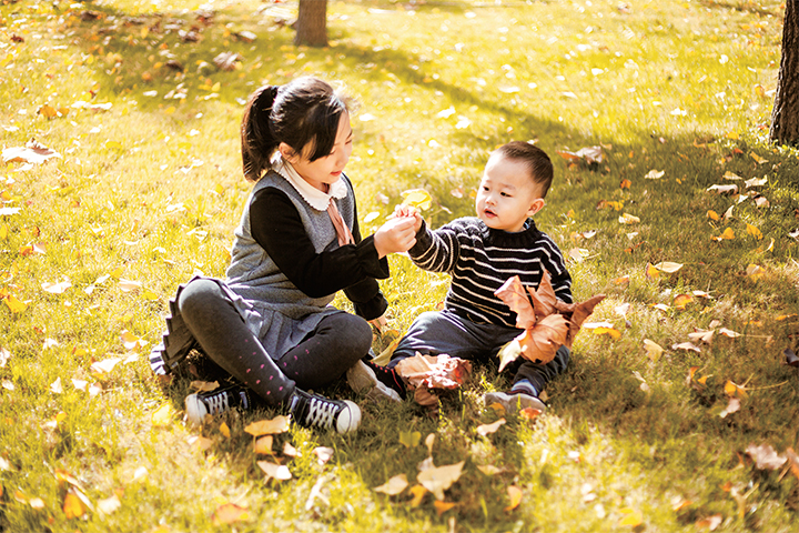 三兩枯葉惹童趣 眼源攝影師 李元元 攝