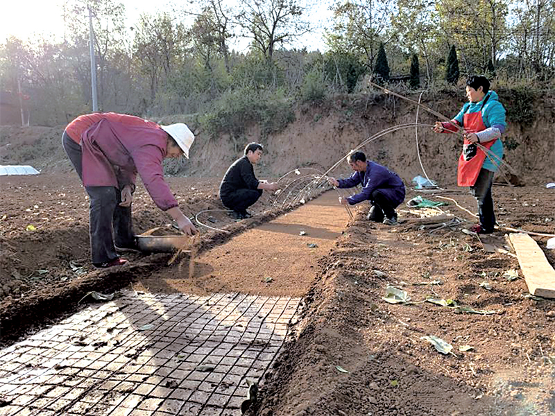 近日,王屋鎮(zhèn)譚莊村村民為剛種的制種白菜覆土搭架。