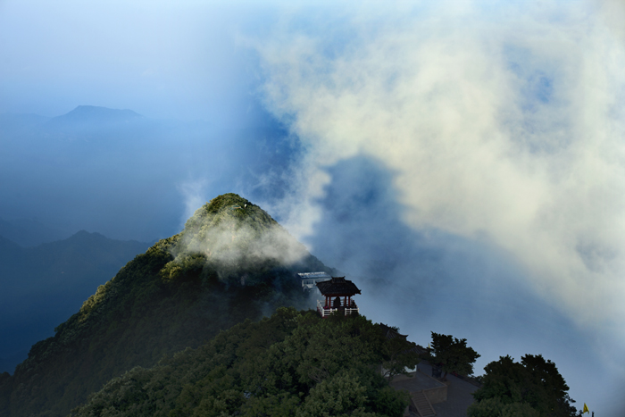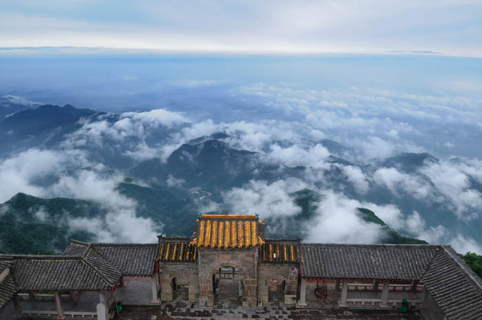 王屋山“以其山形若王者之屋”而得名,銜晉接冀,脈承京師,為中國(guó)古代九大名山之一,主峰天壇山,海拔1715米。據(jù)文獻(xiàn)記載:軒轅黃帝于元年正月甲子登天王屋山設(shè)壇祭天,大戰(zhàn)蚩尤,一統(tǒng)華夏,從此開(kāi)創(chuàng)了我國(guó)5000年的文明史,天下太平,海內(nèi)安然。黃帝在此拜廣成子為師,得道成仙。以后每年的八月十五,四方善士云集于此,道教鼻祖老子李耳以及仙人王子晉、著名方士于吉、南岳夫人魏華存、道教理論家葛洪都曾在此問(wèn)道,奠定了王屋山在我國(guó)道教十大洞天中的宗首地位,被稱為“天下第一洞天”。唐代,這里相繼建成了紫微宮、陽(yáng)臺(tái)宮、總仙宮、清虛宮、十方院、靈都觀等規(guī)模宏大的道教建筑,可以說(shuō)是三里一宮、五里一殿。從此,王屋山宮觀林立,高道如云,香客如流,成為全國(guó)道教活動(dòng)中心?! ?/p>