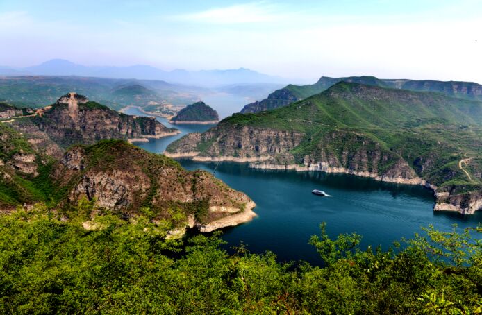 黃河三峽風(fēng)景名勝區(qū)位于濟(jì)源市西南部下冶鎮(zhèn)境內(nèi),距市區(qū)約50公里,總面積約80平方公里,是國家AAAA級(jí)景區(qū)、河南省十大熱點(diǎn)景區(qū)、中原四大避暑勝地。孤山峽、龍鳳峽、八里峽群峰競(jìng)秀、山水交融,大河樓雄踞崖上,氣象萬千。三條峽谷各具特色:孤山峽鬼斧神工、群峰競(jìng)秀;龍鳳峽九曲十折、峽深谷幽;八里峽峭壁如削、雄偉壯觀。景區(qū)不僅高峽平湖、港灣交錯(cuò)、奇峰林立、洞龕眾多,這里是黃河入海前最后一道峽谷,這里有“大禹治水”、“京娘化鳳”的美麗傳說,還有“鯀山禹斧”的黃河文化、“洞天福地”的祈福文化、“犀牛望月”的風(fēng)水寶地等一系列君王勝跡,被譽(yù)為“黃河三峽,皇家山水”,堪稱“中原第一高峽平湖,華夏罕見大河風(fēng)光”?! ?/p>