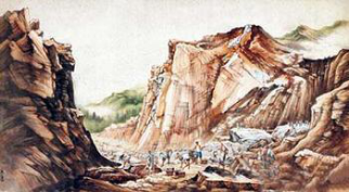 愚公勁兒大,他不管別人說啥,只管不停地劈山。這樣,就感動了老天爺,派神仙把山背走了。話是這么說,實際是修路才把這個嶺劈開的。劈這個嶺可不是百兒八十個人、三年兩年的事。他一挖,山低了,再經(jīng)過常年雨水沖刷,路就慢慢出來了。