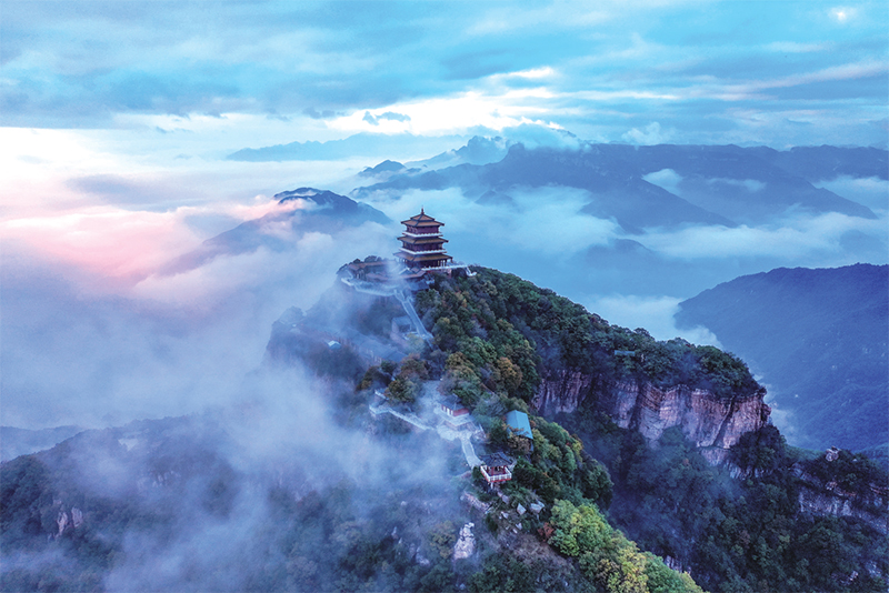 一峰突起萬峰臣服。站在王屋山主峰天壇山頂舉目四望,團(tuán)團(tuán)云霧在群山間吐納翻涌,無限風(fēng)光盡收眼底,恍然有種“有峰高出驚濤上,宛然舟揖隨波漾”的感覺。面對此情此景,我內(nèi)心頓生心曠神怡之感,心境也變得豁然開朗了。