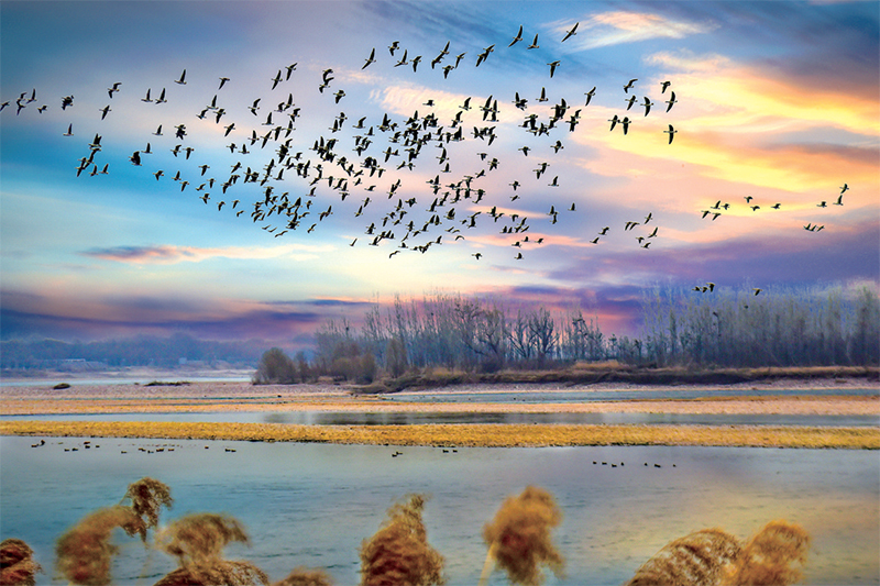 冬日的黃河濕地,落霞醉人,百鳥齊飛,場面蔚為壯觀,令人流連忘返。想來是濟(jì)源良好的生態(tài)環(huán)境,引來了這些小精靈,造就了這動人的一幕。