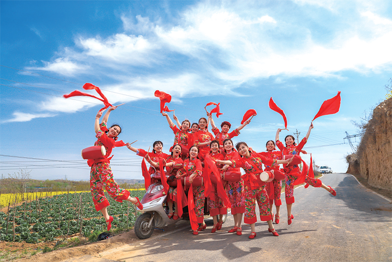 2019年初春的一天,沁園舞蹈隊的姐妹們在下鄉(xiāng)演出的路上歡呼起舞、踏歌而行。在無數(shù)個日子里,她們以田間地頭為舞臺,舒展蹁躚的舞姿,贏得了群眾的滿堂彩。這一抹紅,這燦爛的笑,怎能不令人心動?