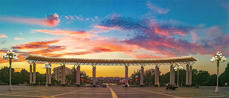 2019年6月下旬,正值仲夏時節(jié)。一天傍晚,紅日將墜之時,整個城市仿佛披上了一層美麗的霞衣。我在外散步時,看到晚霞好似游龍戲珠,逸趣橫生,便抓拍了下來。而它,也成了我這一年最滿意的照片。