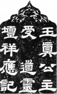 天寶二年(743年)三月,玄宗詔玉真公主于譙郡御真觀,令其代巡天下名山。玉真公主一行從京城長(zhǎng)安出發(fā),先登華山謁拜,然后沿著通往東都洛陽(yáng)的官道,一路東行。行至函谷關(guān)老子玄元宮,暫作停留,拜天地,謁廟宇,投金簡(jiǎn)。而后駕游中岳嵩山,在道教圣地太室山拜訪上清派道士焦真靜,與焦共修養(yǎng)生內(nèi)丹。五月,北渡黃河,行巡王屋山,朝拜于天壇仙人臺(tái)。并在這里舉行了一次規(guī)模浩大的受箓道場(chǎng),授箓者是北岳恒山洞靈宮胡姓高道。受箓時(shí),玉真公主“齋心順風(fēng),膝行避席,請(qǐng)授八錄三洞紫文靈書(shū)?!彼趦?nèi)容包含日神郁儀、月神結(jié)鄰之箓。至此,玉真公主已“四升仙階,五授真箓”,成為唐代公主中的最高道階。