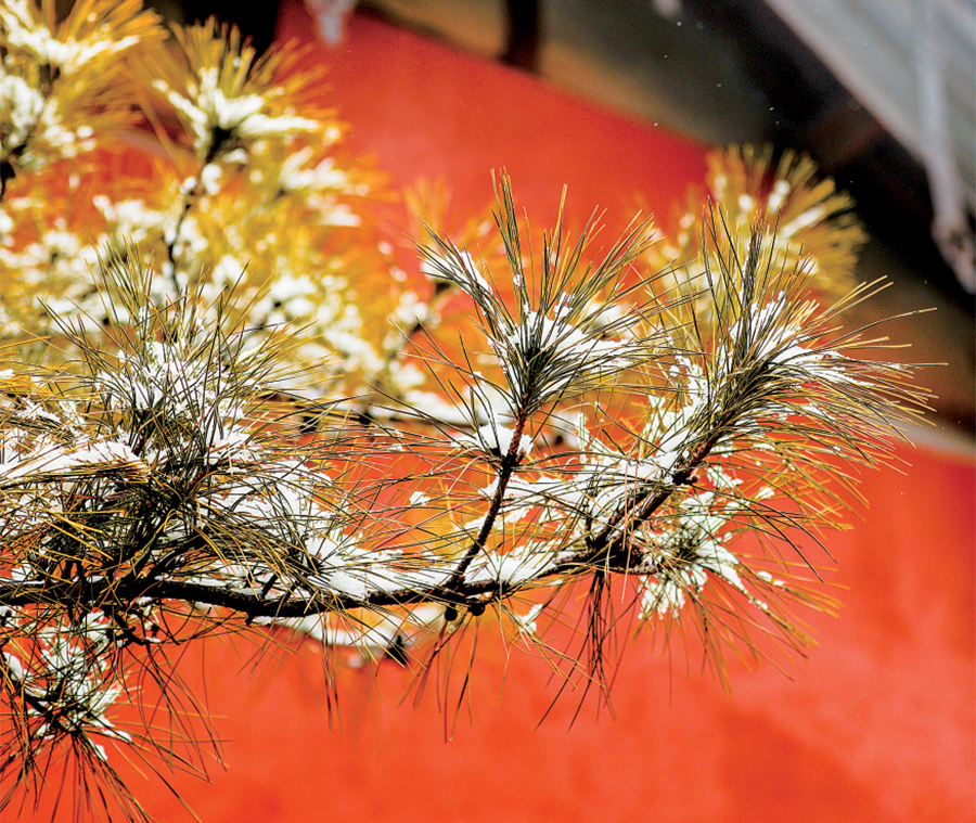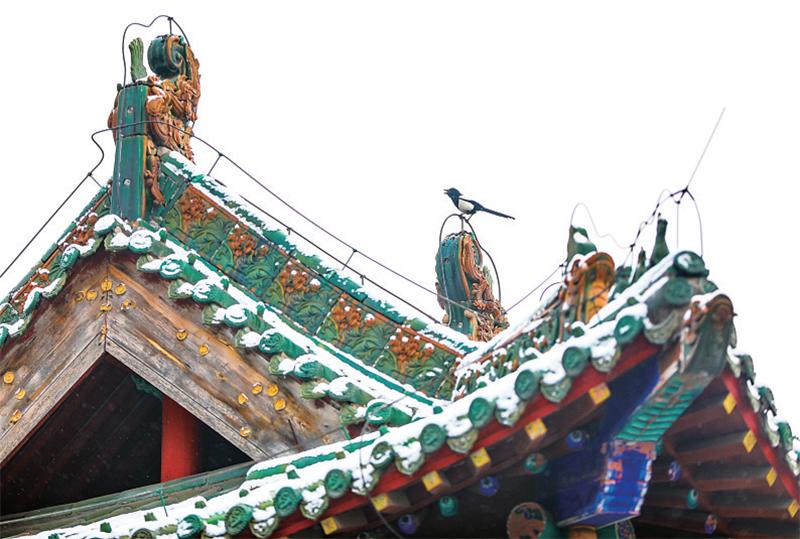 看著眼前的雪白世界,耳邊聽著古剎里傳來的鐘聲,鼻尖縈繞廟里香火的氣味,再亂的心境也跟著平靜。