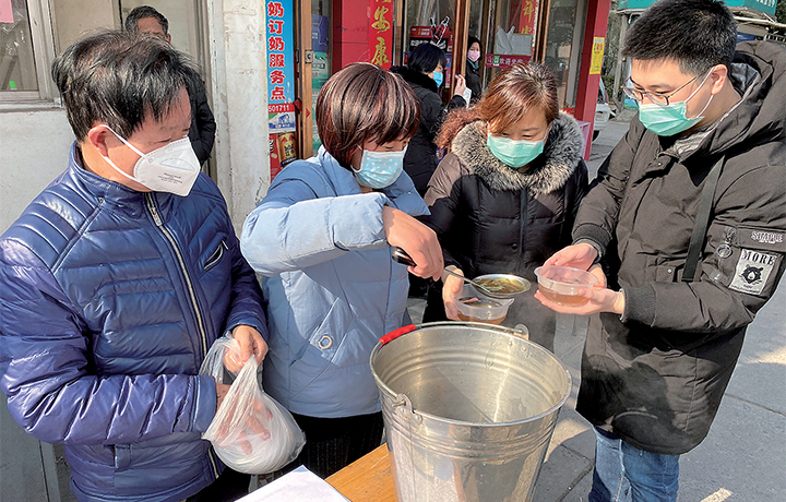 連日來,崔桂郡夫婦用蒲公英、甘草等9種藥材熬制中藥湯,免費(fèi)分發(fā)給街坊鄰里。崔桂郡說,疫情無情,大家團(tuán)結(jié)一心定能打贏這場(chǎng)疫情防控阻擊戰(zhàn)。趙俊峻 攝