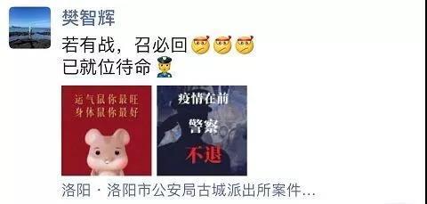 樊智輝是洛陽(yáng)市公安局古城派出所一名民警,妻子田明輝工作在河南科技大學(xué)第一附屬醫(yī)院。樊智輝說(shuō):疫情在前,醫(yī)護(hù)不退,警察不退,你我都不退縮!你身穿白衣,在醫(yī)院救治病人,我警服上身,維持社會(huì)治安。若有戰(zhàn),召必回!醫(yī)警聯(lián)手,共筑平安!