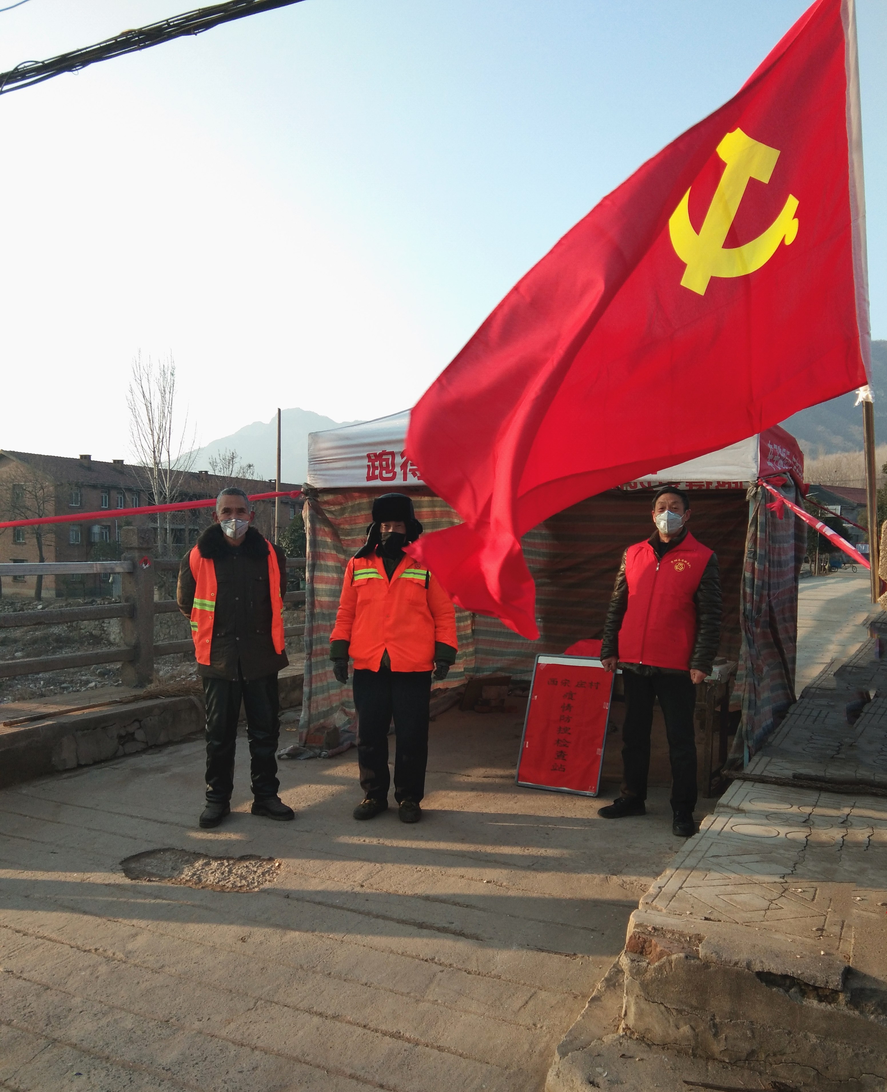 思禮鎮(zhèn)西宋莊村成立黨員先鋒崗,24小時(shí)在村口值守。 李紅戰(zhàn) 攝