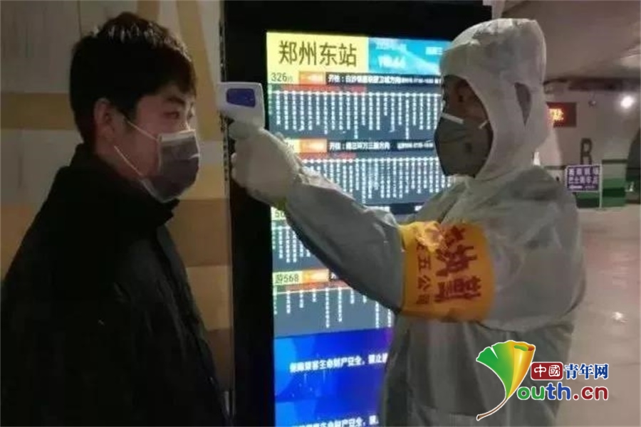 鄭州人民醫(yī)院鄭東院區(qū)組織青年突擊隊(duì)加入鄭州高鐵東站的防疫工作值守中,每天將派出約30名隊(duì)員在高鐵東站多個(gè)出入口值守,每天的排查人數(shù)近2萬(wàn)人。何青 攝