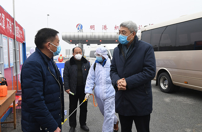 2月7日,省長尹弘在調(diào)研途中,突擊暗訪檢查了京港澳高速駐馬店服務(wù)區(qū)和確山縣新安店鎮(zhèn)境內(nèi)的明港機場收費站卡口疫情防控流程和交通運輸情況。尹弘主動下車接受體溫檢測,親身體驗交通卡口疫情防控的具體流程。臨走前,他對卡口一線防控人員表示慰問,鼓勵大家嚴(yán)防嚴(yán)控,認(rèn)真落實醫(yī)療防控物資和生活必需品運輸綠色通道制度,堅定戰(zhàn)勝疫情信心。(文/李鵬 圖/杜小偉)