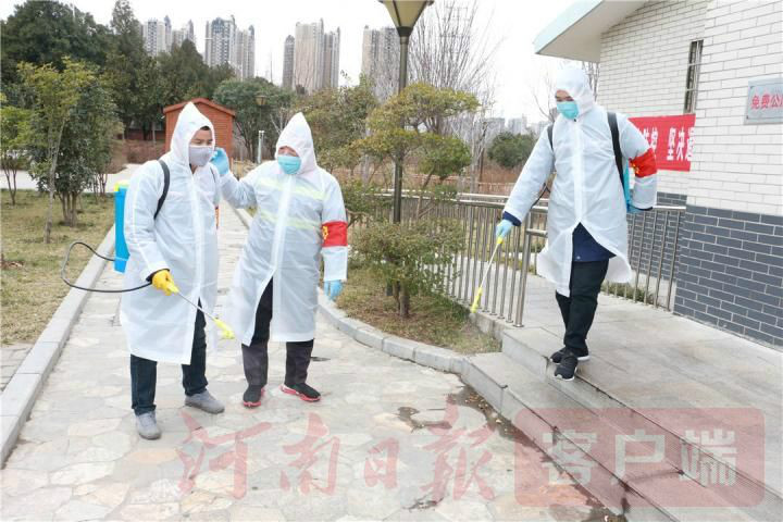 為預(yù)防可能的糞口傳播風(fēng)險,由二七區(qū)環(huán)管所黨支部“全國勞模”江學(xué)銅發(fā)起成立的黨員突擊隊,穿上防護服、背上消毒桶,每天對車站廣場、醫(yī)院、游園、主干道周邊公廁進行集中消殺。