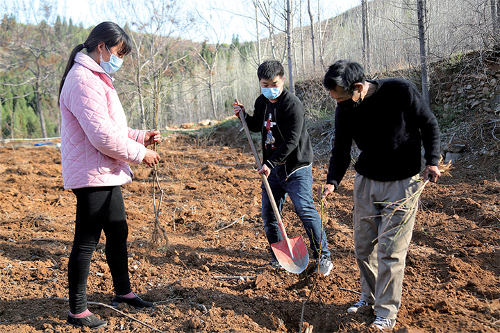 3月18日,趁著天氣晴好,克井鎮(zhèn)茶店村村民來到采摘園,種下一棵棵血桃樹。