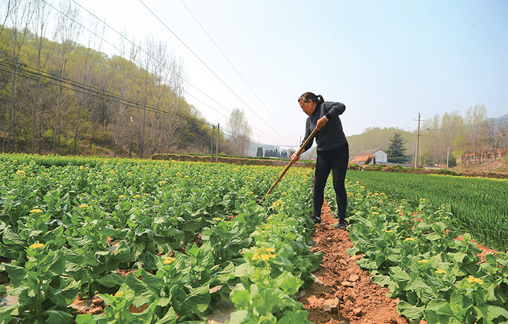 3月23日,在承留鎮(zhèn)虎嶺村,種植戶(hù)在制種蔬菜地澆水。