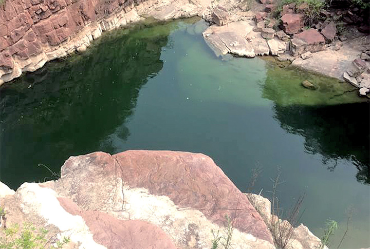 此處兩座山峰相對,兩山谷底成河,河床又因山體陡峭跌落成潭,潭壁山脈滲水成泉。泉潭氣勢恢宏,像是黃河“壺口瀑布”的地勢。汛期來臨時,山間洪水從寬闊的石板河床上飛流直下約20余米,水霧繚繞、濤聲震天,沿著深壑谷底,奔流向東南方匯入黃河。山危水奇,蔚為壯觀!泉潭西約80米的左岸山腰處有一座白龍廟。