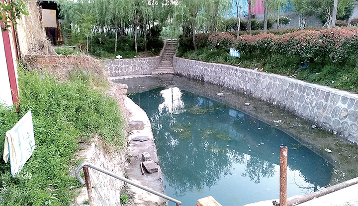 有泉水涌出。2017年,居委會用青石和水泥砌筑了泉池。