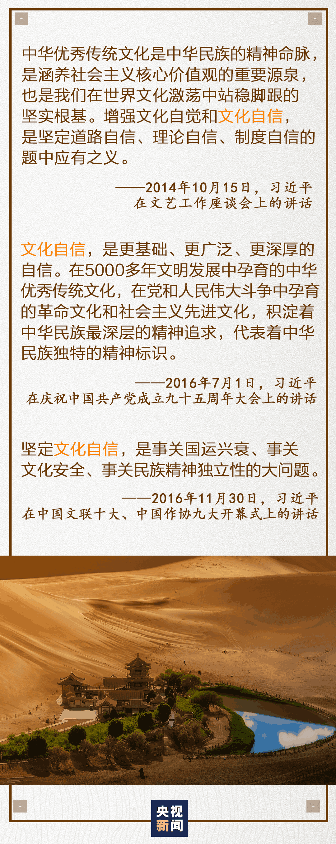 2016年5月17日,習(xí)近平在哲學(xué)社會(huì)科學(xué)工作座談會(huì)上強(qiáng)調(diào):“我們說要堅(jiān)定中國特色社會(huì)主義道路自信、理論自信、制度自信,說到底是要堅(jiān)定文化自信。”
