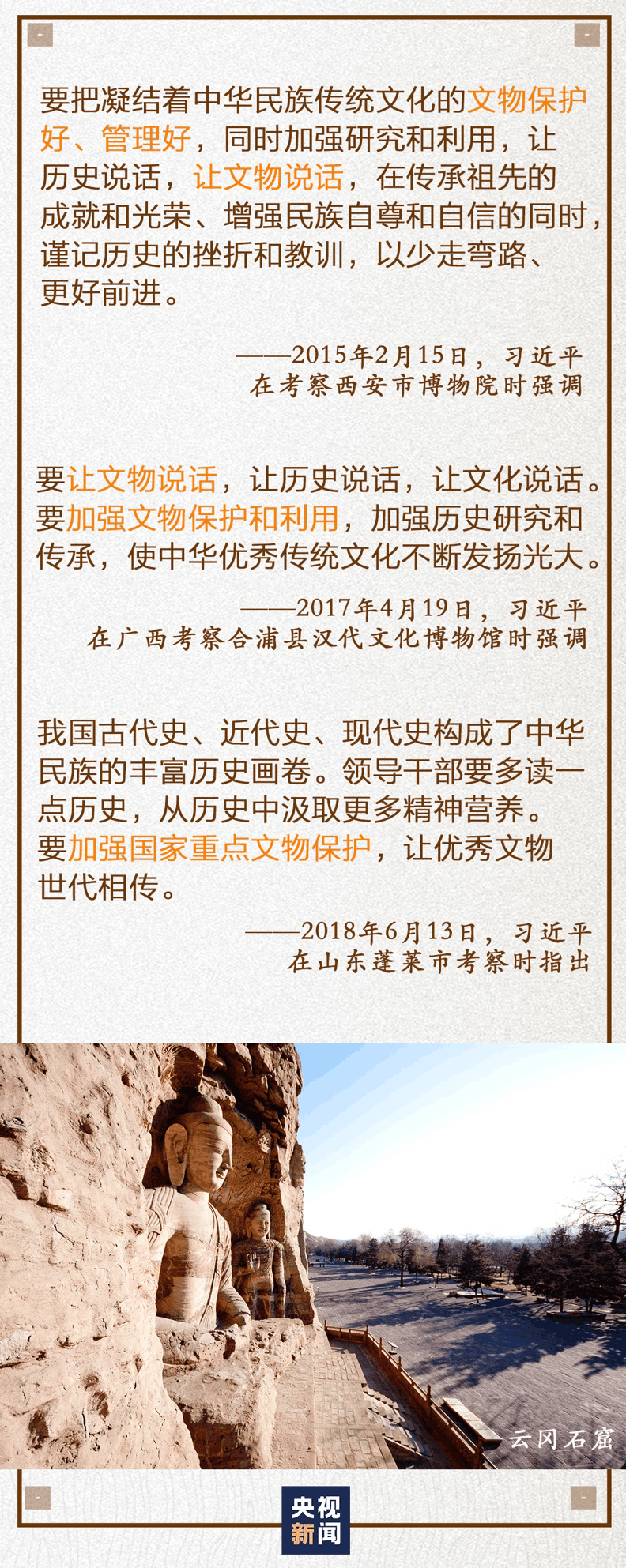 黨的十八大以來,習(xí)近平總書記到地方考察調(diào)研,多次強(qiáng)調(diào)文物保護(hù)工作。