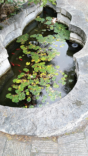 院內(nèi)西臺(tái)階處有一青石龍頭口吐甘潤,伏流三、四米至秋葉池出,常年不涸,又潛流出寺外。