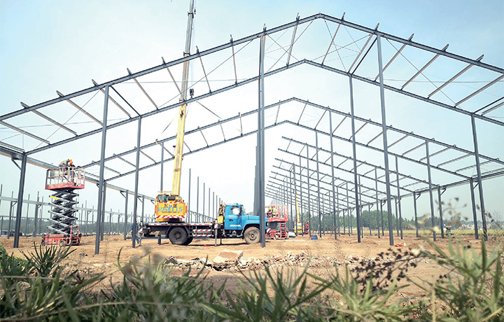 這是記者日前在“禾牧然”觀光牧場(chǎng)項(xiàng)目施工現(xiàn)場(chǎng)拍攝的鋼結(jié)構(gòu)牛舍頂梁架設(shè)畫(huà)面。