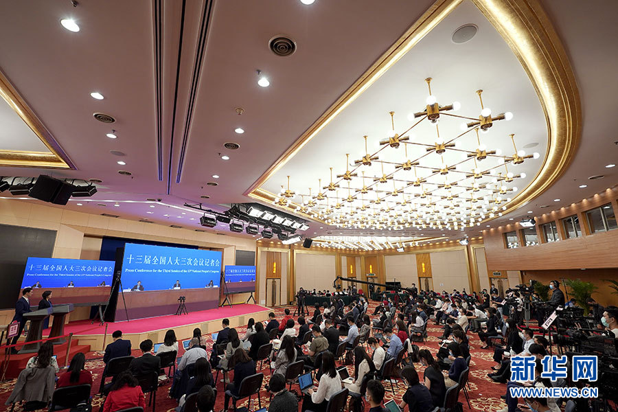 5月28日下午,十三屆全國人大三次會議在北京人民大會堂舉行記者會,國務(wù)院總理李克強應(yīng)大會發(fā)言人張業(yè)遂的邀請出席記者會,并回答中外記者提問。這是記者在梅地亞中心多功能廳采訪。 新華社記者 金良快 攝