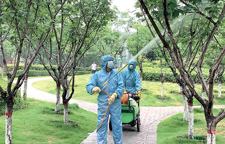6月12日,工作人員在建業(yè)·壹號(hào)城邦小區(qū)進(jìn)行消殺。