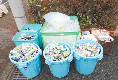 在東京一棟住宅樓前,整齊擺放著已經(jīng)分好類的可回收垃圾。人民日報記者 劉軍國攝