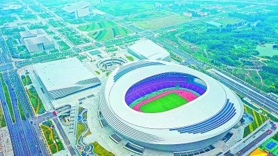 鄭州市奧體中心項(xiàng)目是河南省單體面積最大的公共建筑。聶冬晗攝/光明圖片